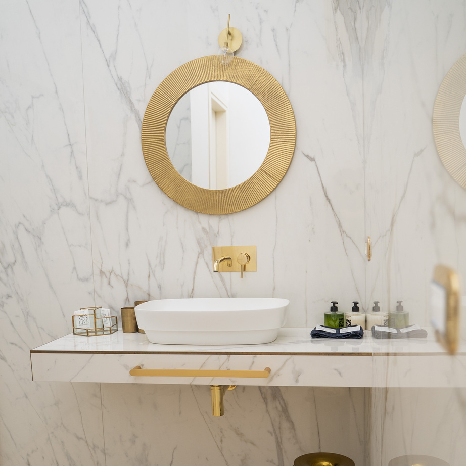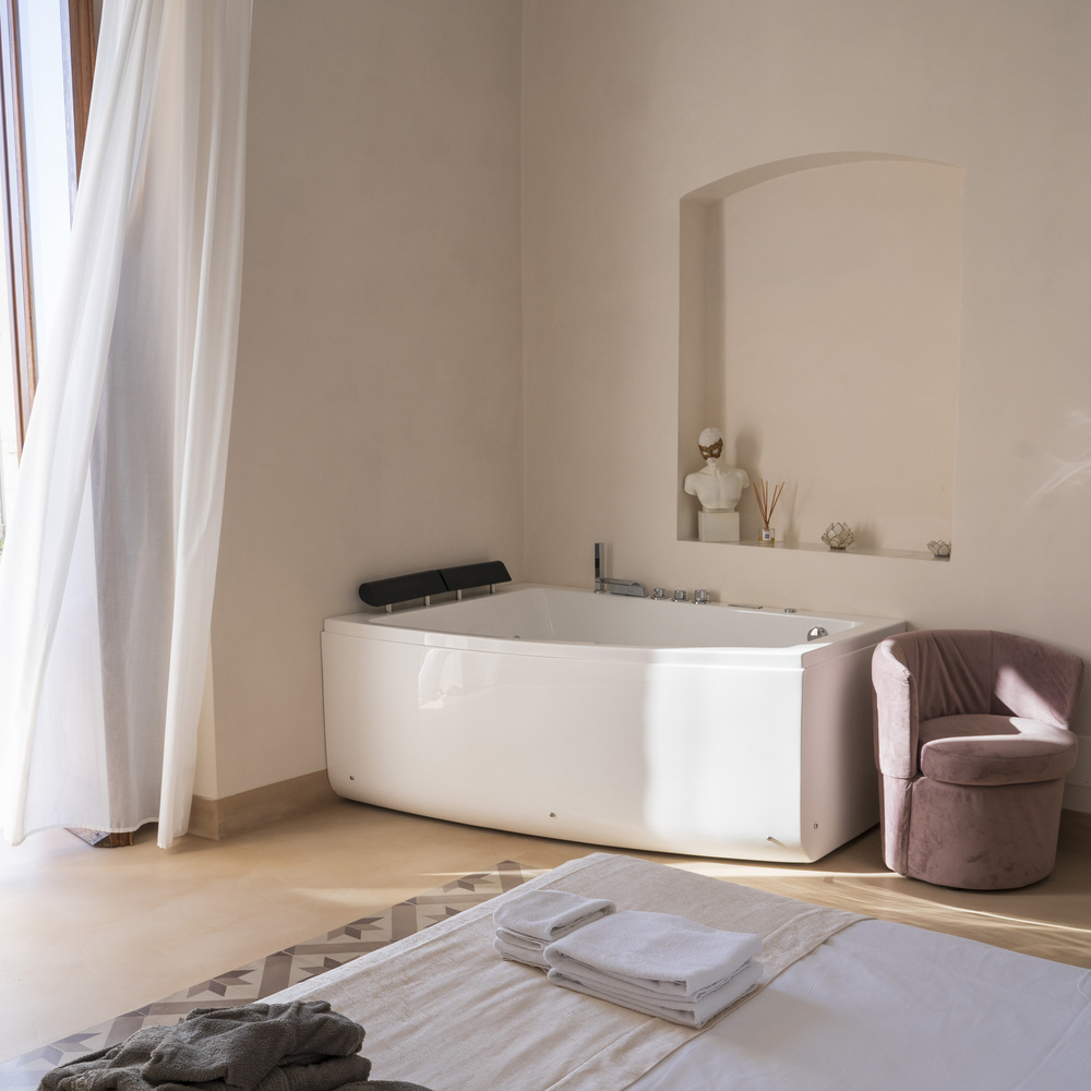 Affrescato con immagini di trionfo, a celebrare l’ascesa politica e sociale del padrone di casa, nei suoi 38 metri quadrati è stata ricavata una camera lussuosa ed esclusiva, con finiture color oro, marmi, una accogliente vasca idromassaggio e un arredo raffinato. Come in ogni stanza, parte della pavimentazione originale dell’epoca è stata restaurata.